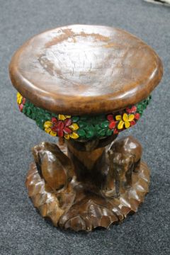 A carved hardwood and painted elephant stool