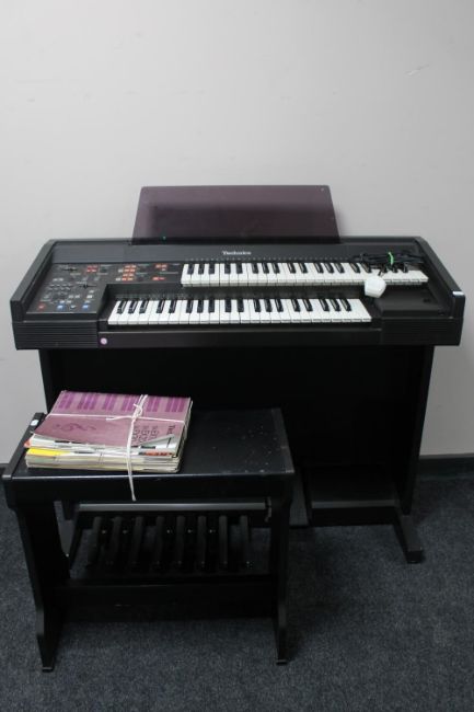 A Technics Sound VX 10L electric organ with stool and books