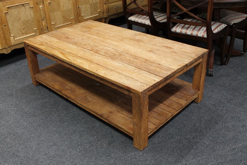 A rustic pine two tier coffee table