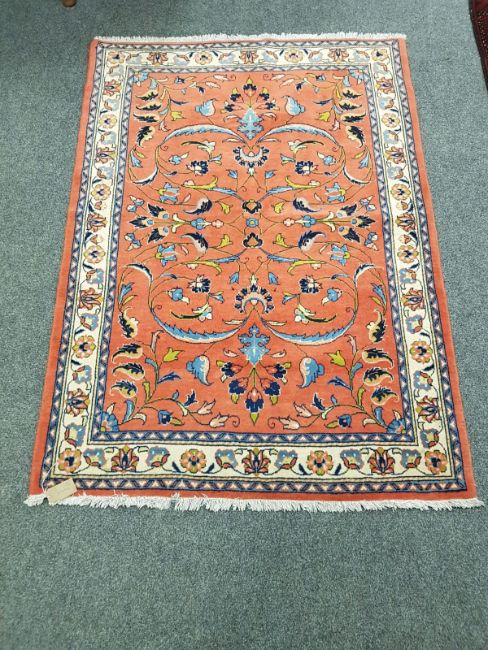 A Malayer rug, on salmon ground, 106 cm x 145 cm