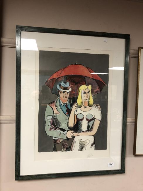 After Helion : Figures in the rain, lithographic print, limited edition, signed in pencil, 44 cm x 63 cm