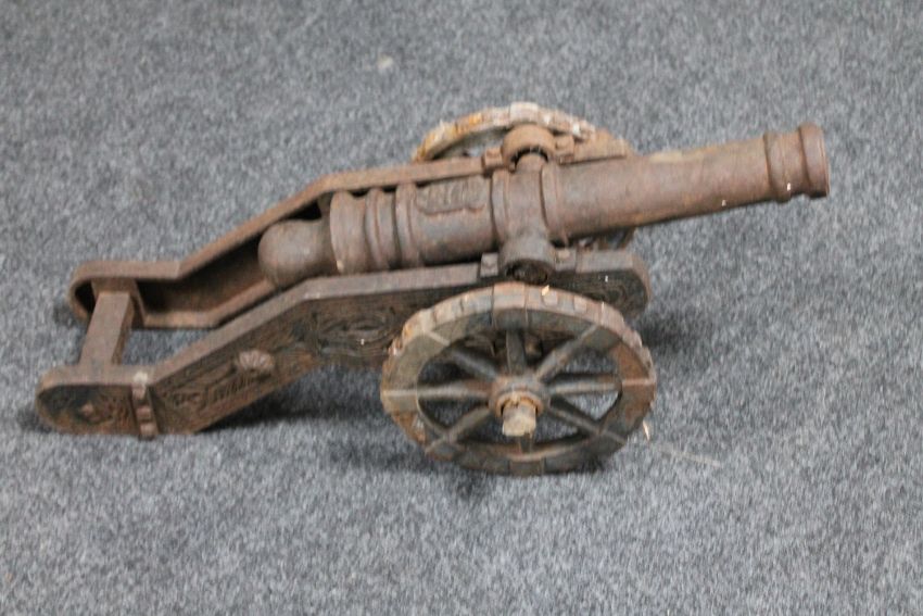 An antique cast iron model of a signal cannon