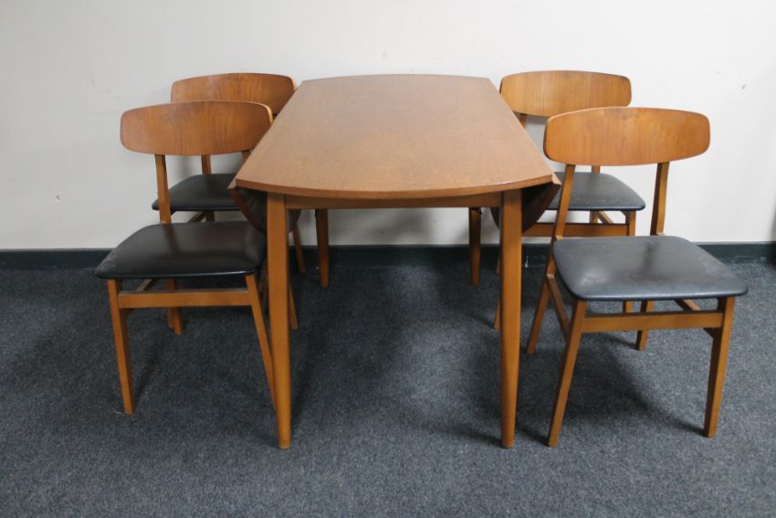 A 20th century teak drop leaf table and four chairs