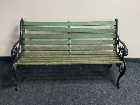 A cast iron and wooden slatted garden bench