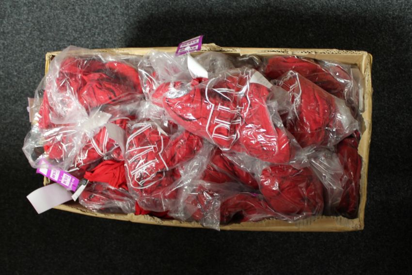 A box of Phaze red micro fibre crop tops