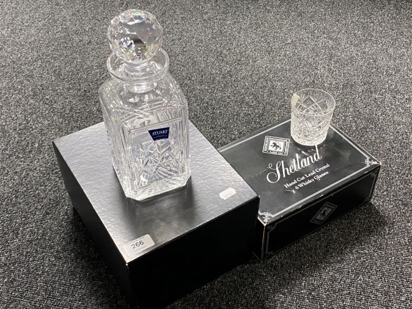 A box of Stewart Crystal whisky decanter, six boxed Edinburgh Crystal Shetland hand cut whisky glasses