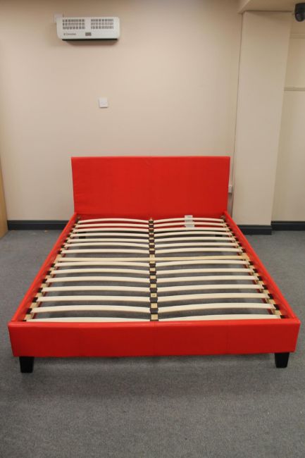 A contemporary red leather 5' bed frame (unassembled, in two boxes)