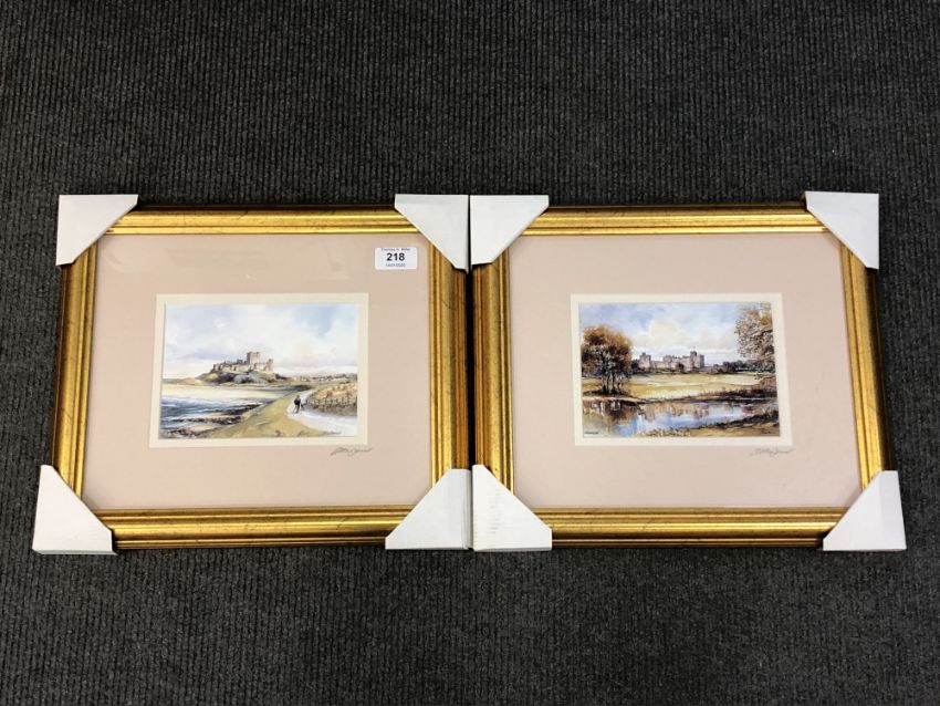 After Tom MacDonald : A pair of colour reproductions, signed in pencil, 13 cm x 17 cm, framed : Bamburgh Castle and Alnwick (2)