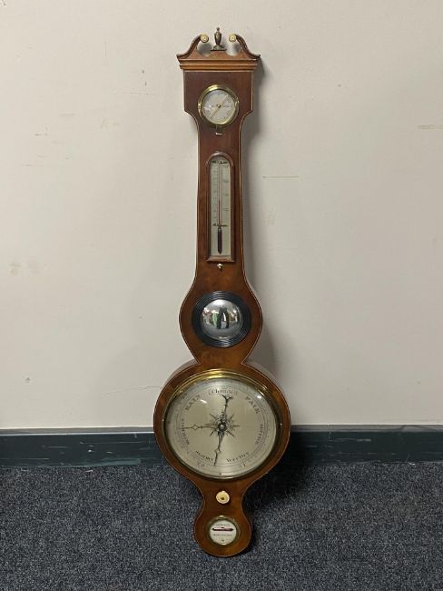 An antique mahogany cased barometer with silvered dial by D. Arnoldi of Gloucester