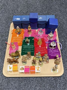 A tray of boxed and unboxed Wade whimsies, eight Al Zebaque perfumes with cloth bags (six with boxes)