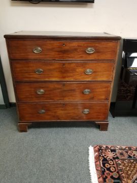 A George III mahogany four drawer chest on bracket feet, width 112 cm