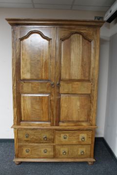 A contemporary hardwood double door wardrobe fitted four drawers
