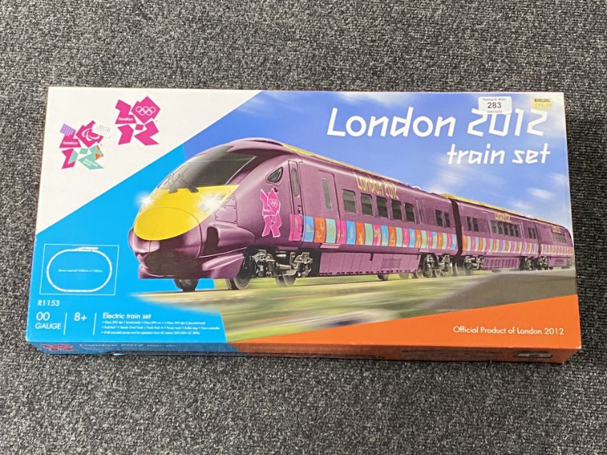 A boxed London 2012 Olympic electric train set