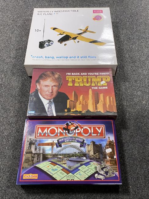 A Monopoly game - Newcastle and Gateshead Edition, Donald Trump board game and a remote control air craft