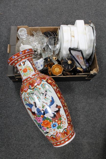 A box of oriental vases, collector's plates, glass ware, tea china etc