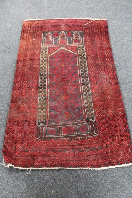 An Afghan prayer rug, 155cm by 92cm