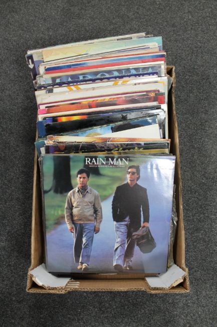 A box of seventy-five vinyl records - Madonna, The Bangles, Elton John, dance music etc