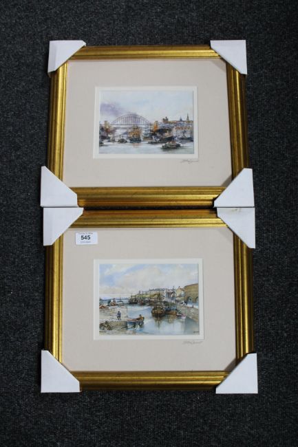 After Tom MacDonald : A pair of colour reproductions, signed in pencil, 13 cm x 17 cm, framed : Seahouses and Newcastle upon Tyne (2)