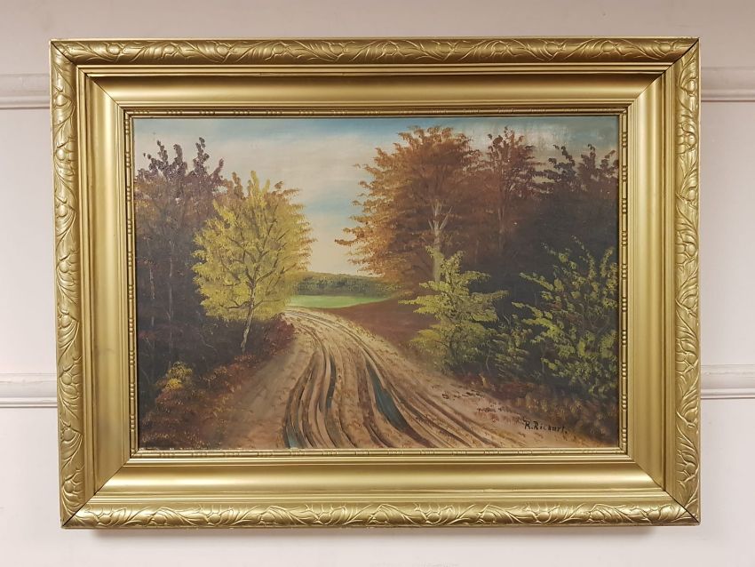 Continental school : woodland path, oil on canvas, 63 cm x 43 cm