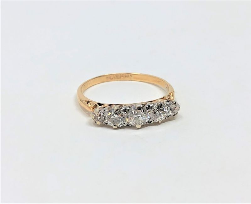 An 18ct gold three stone diamond ring, approximately 0.75 carat, size M.