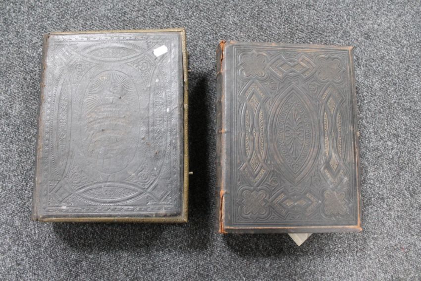 Two 19th century leather bound bibles with colour plates