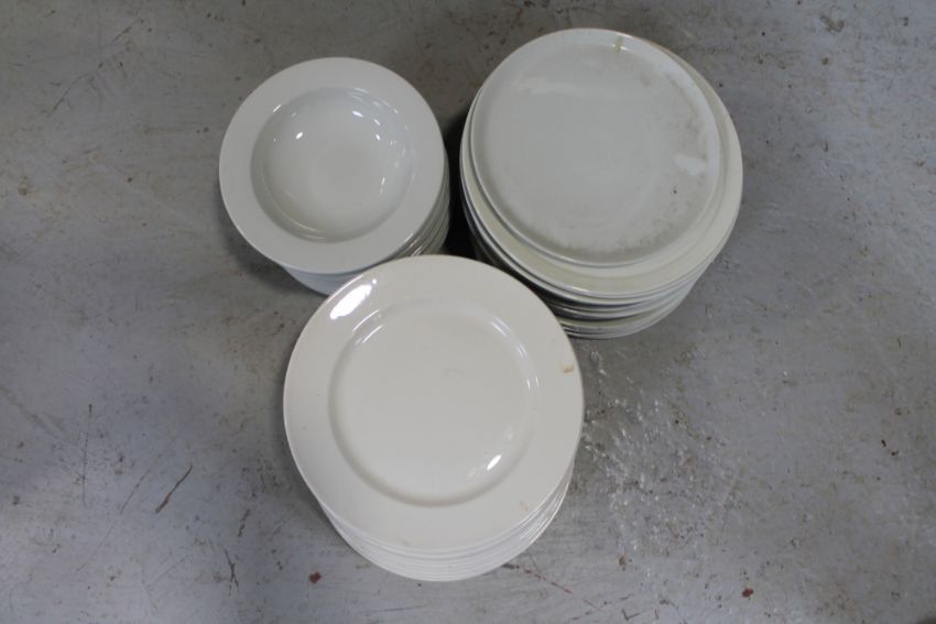 Sixty two assorted Churchill catering soup, dinner and pizza plates