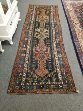 An antique Kurdish runner, 114 cm x 331 cm