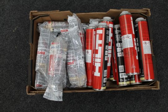 A box of Hilti fire foam canisters