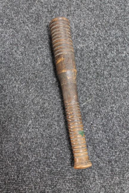An antique carved wooden priest