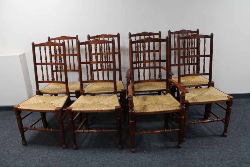 A set of eight stained beech farmhouse kitchen chairs
