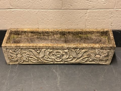 A concrete garden trough, length 98 cm.
