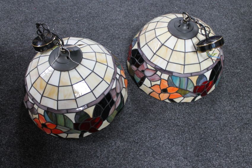 A pair of Tiffany style pendant light shades