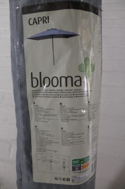 A Capri Blooma garden parasol with cover and stand