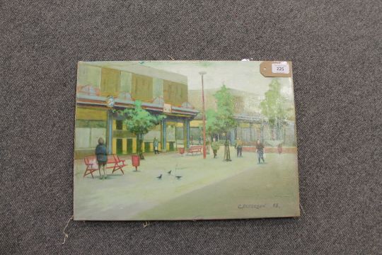 George Patterson: Jarrow Shopping Precinct, oil on canvas, signed, dated '98, 33cm by 46cm, unframed on stretcher.