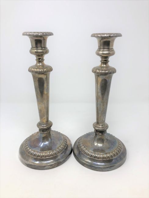 A large pair of George II silver candlesticks, John Roberts & Co., Sheffield 1810, height 29cm