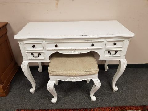 A contemporary white dressing table on cabriole legs with matching stool, width 110 cm.
