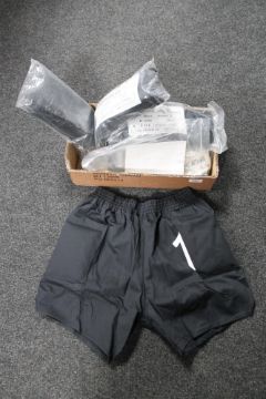 A box of six pairs of East German goalkeeper's shorts, size medium