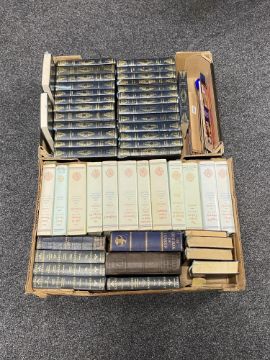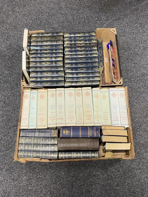 Two boxes of twelve volumes The History of England, Heron books, leather bound volumes, novels, The Great Book of Humour etc