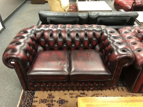 A Chesterfield style two seater oxblood settee, width 160 cm