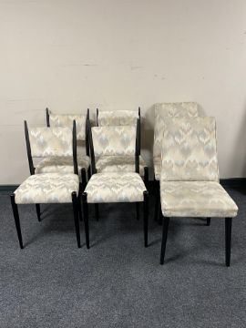 Set of four ebonised G-Plan Librenza dining chairs and a further pair of ebonised dining chairs.
