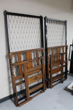 A pair of Edwardian oak barley twist 3' bed frames with box springs