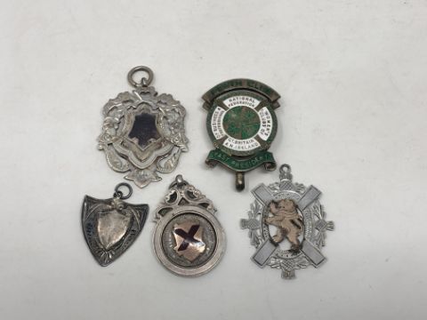 Five various silver fobs.