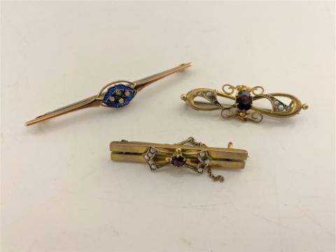 Three gold brooches, 7.9g.