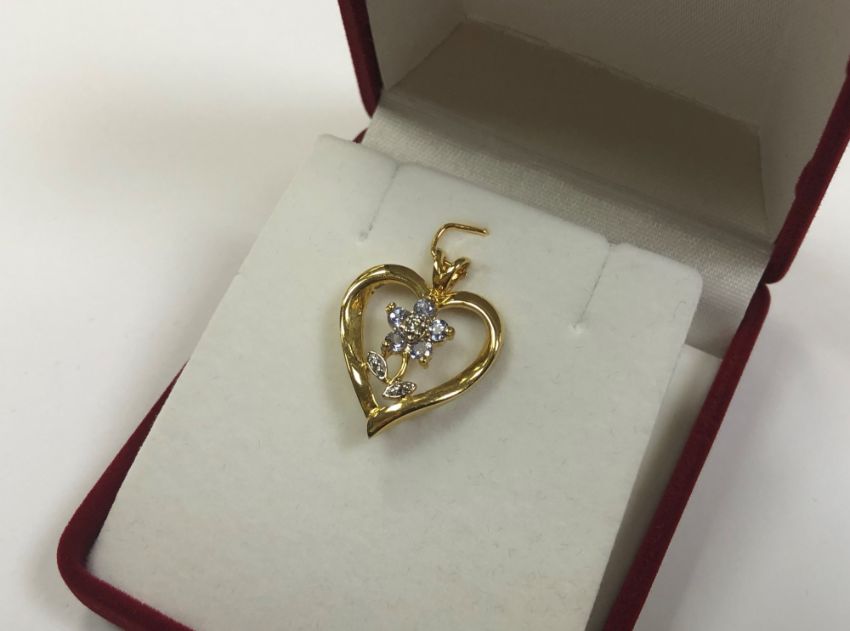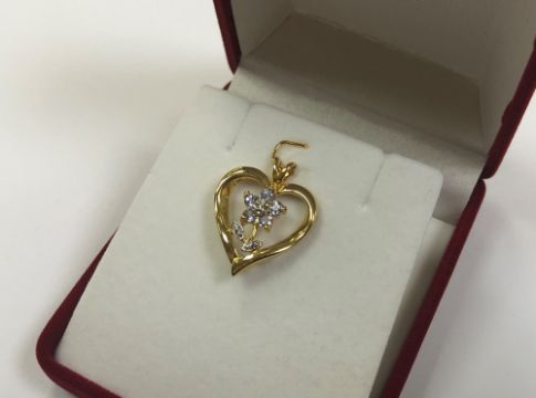 A 10ct yellow gold floral diamond and tanzanite pendant