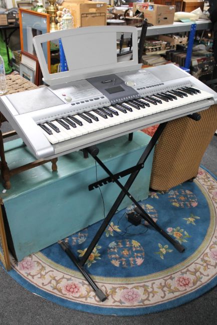 A Yamaha PSR-295 electric keyboard with lead on stand.