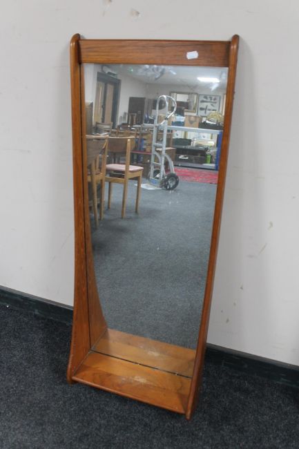 Glass with surface dirt and watermark to shelf. Plywood backboard. See images. 108cm high by 40cm wide by 15cm deep.