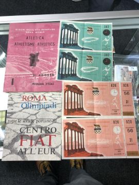 A 1960 Rome Olympics Athletics programme including four tickets for the athletics and football together with a Fiat Olympic booklet.