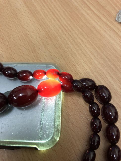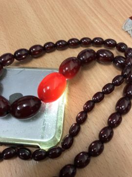 The bead necklace weighs 60.8g. See images.
