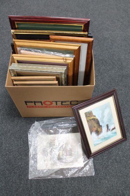 A box containing a large quantity of assorted framed pictures and prints