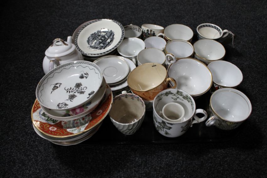 A tray of antique English tea china to include a Royal Worcester bone china tea pot